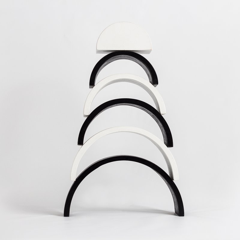 Y tantas otras cosas por descubrir con el ARCOÍRIS DE 6 PIEZAS. Sumergidos en la simpleza del arcoíris nos adentramos a un mundo mágico, descubriendo un amplio abanico de posibilidades por su gran versatilidad, dado que sus piezas pueden ser apiladas, ordenadas por tamaño, alineadas, y con ellas construir innumerables escenarios de mayor tamaño que recreen historias de la vida real (pueden ser puentes o túneles para los autos, torres, montañas, casas para los muñecos, laberintos de bolitas) fomentando el juego simbólico, la creatividad y la imaginación. Sus piezas pueden apoyarse desde diferentes bases otorgando la posibilidad de construir figuras tanto bi como tridimensionales, de gran altura o superficie. Fomenta la estimulación de funciones cognitivas como el uso de la lógica, la concentración, la atención, la resolución de problemas, presentándose desafíos de equilibrio y contrapesos en las construcciones. Por tener duplicadas sus piezas ofrece un plus de estimulación, pudiendo trabajar con él las simetrías, categorizar las piezas por tamaño y color. Es un producto tan versátil que se complejizará a medida que el niño crezca y desarrolle habilidades.